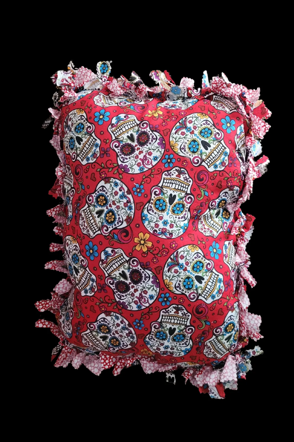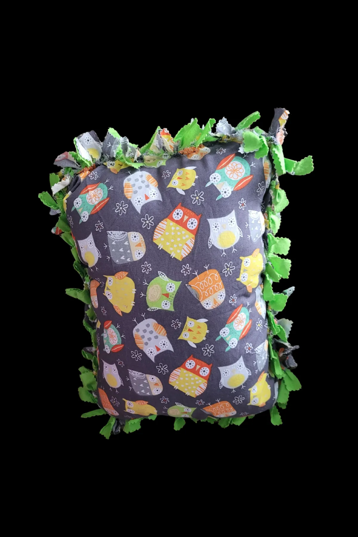 Made from cotton printed material. Used to add a splash of color to any room. They are also great for a small pillow to cuddle up with and watch a movie.